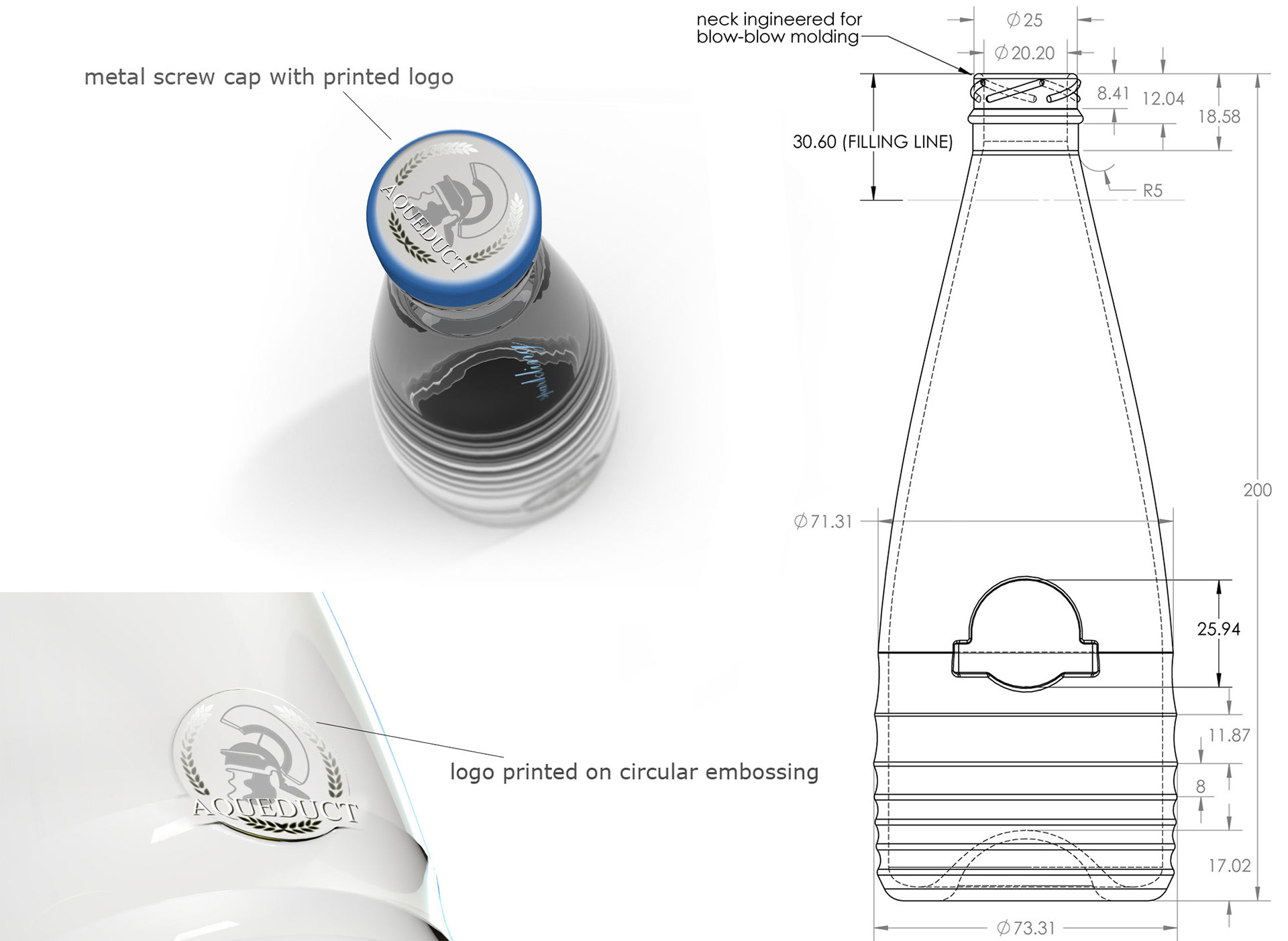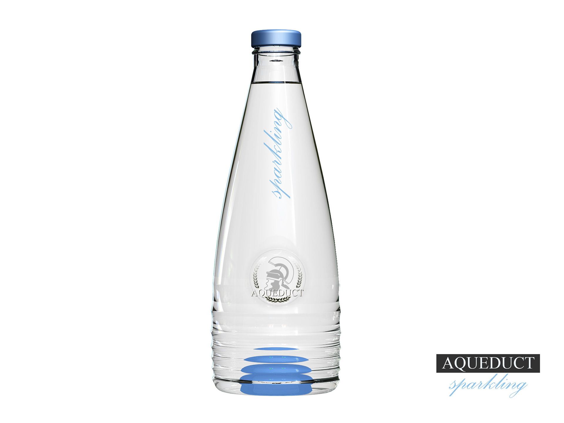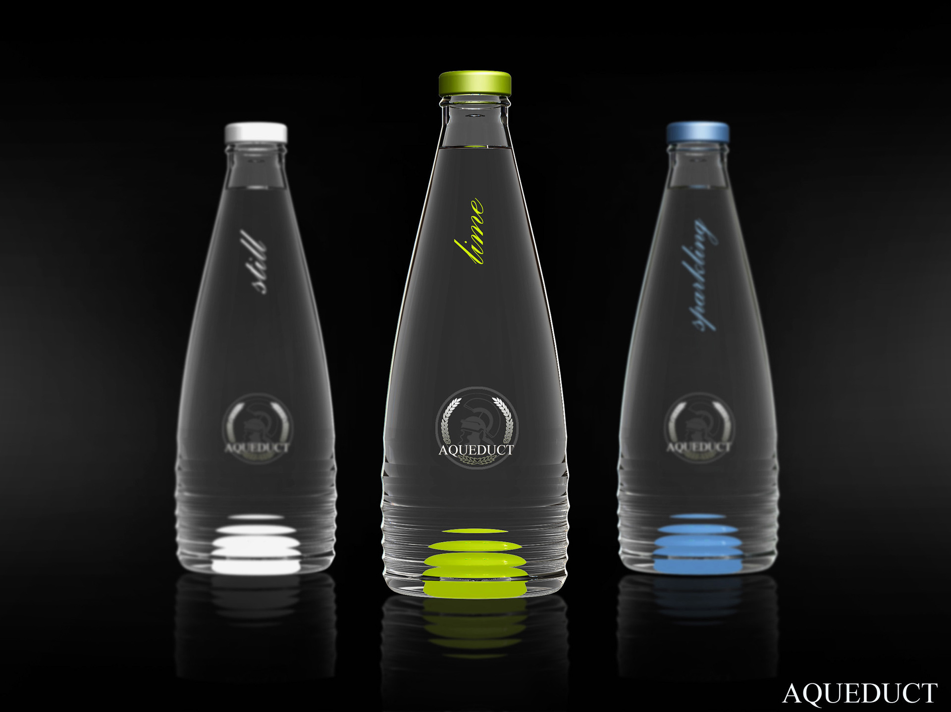 “Aqueduct” mineral water packaging concept: product + graphic.-waved shape of glass creates a ripple eect similar to the way objects reflect in water-the bottom dome of the glass deformed by he glass subtly reminds of a roman arch reflecting in water making the connection with the brand name.