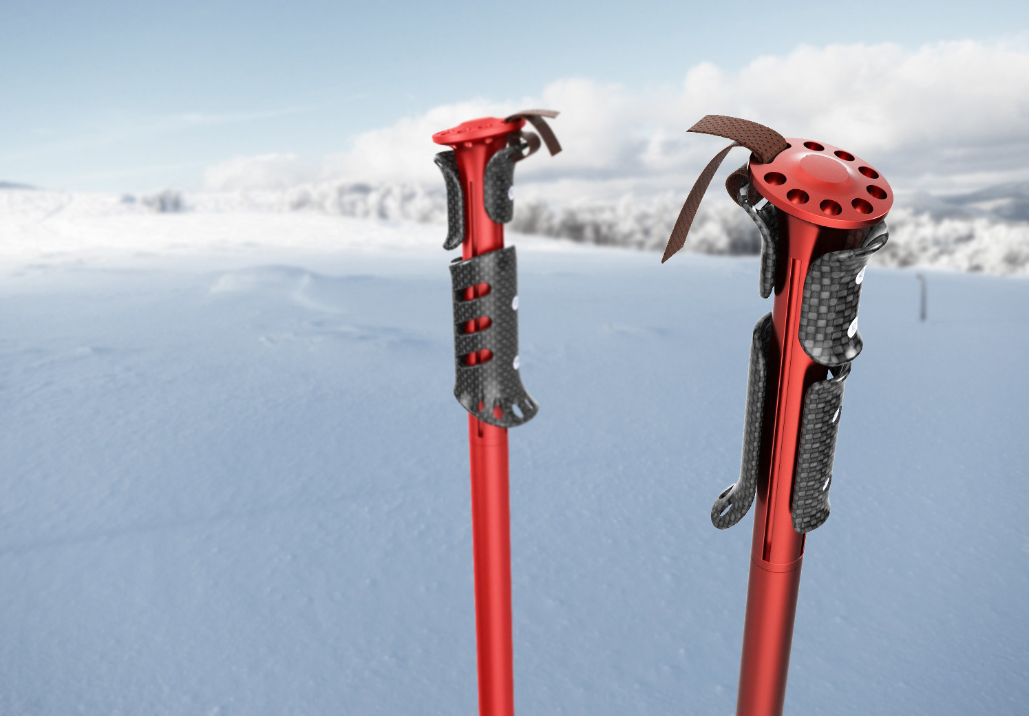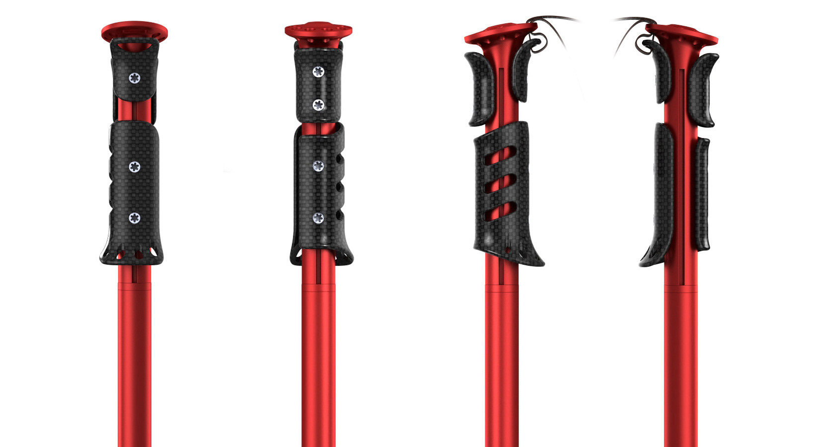 Ski pole concept made of aluminum and carbon with adjustable grip size.